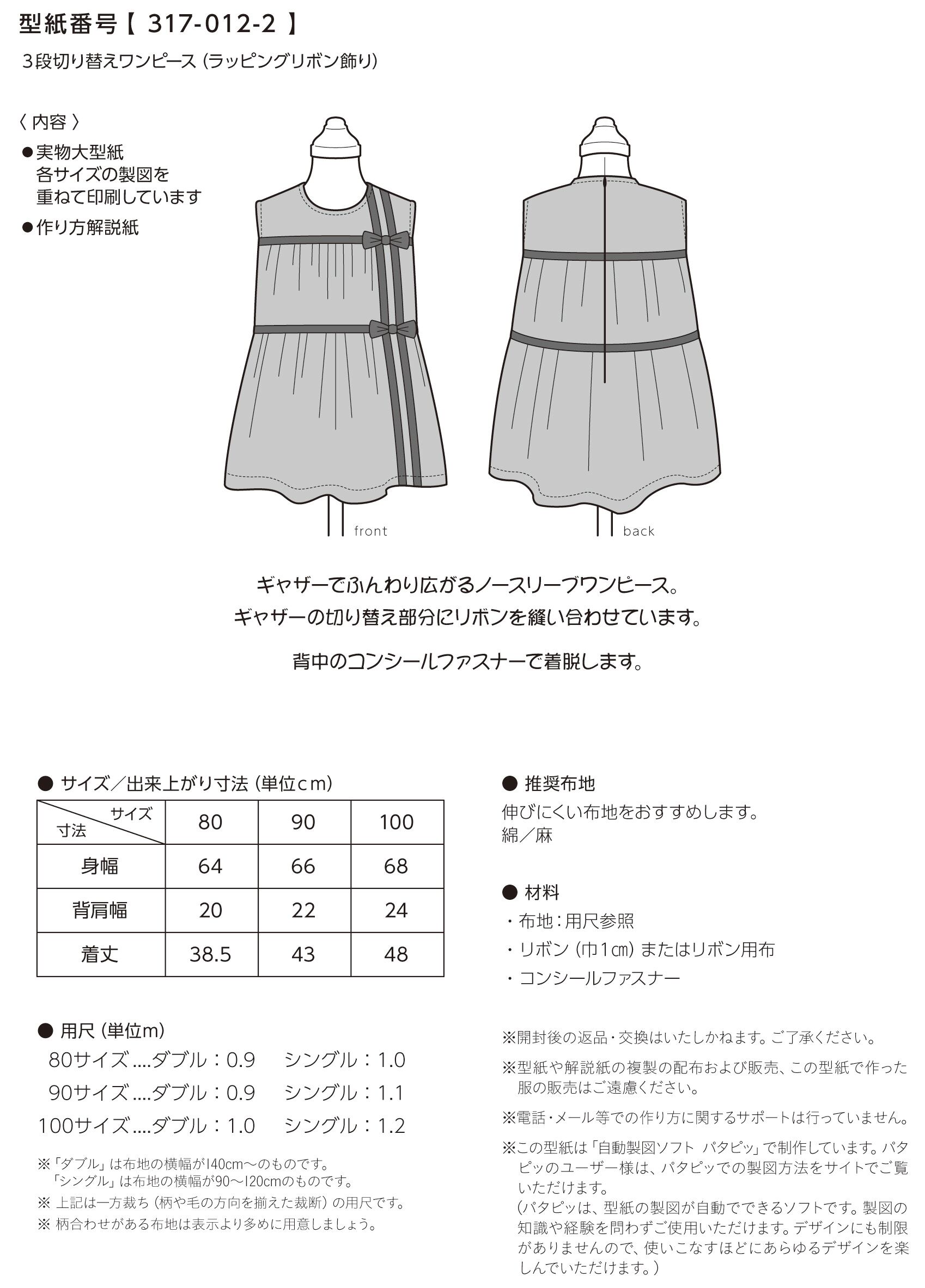 110~130サイズも販売中【型紙番号 317-012-3】。