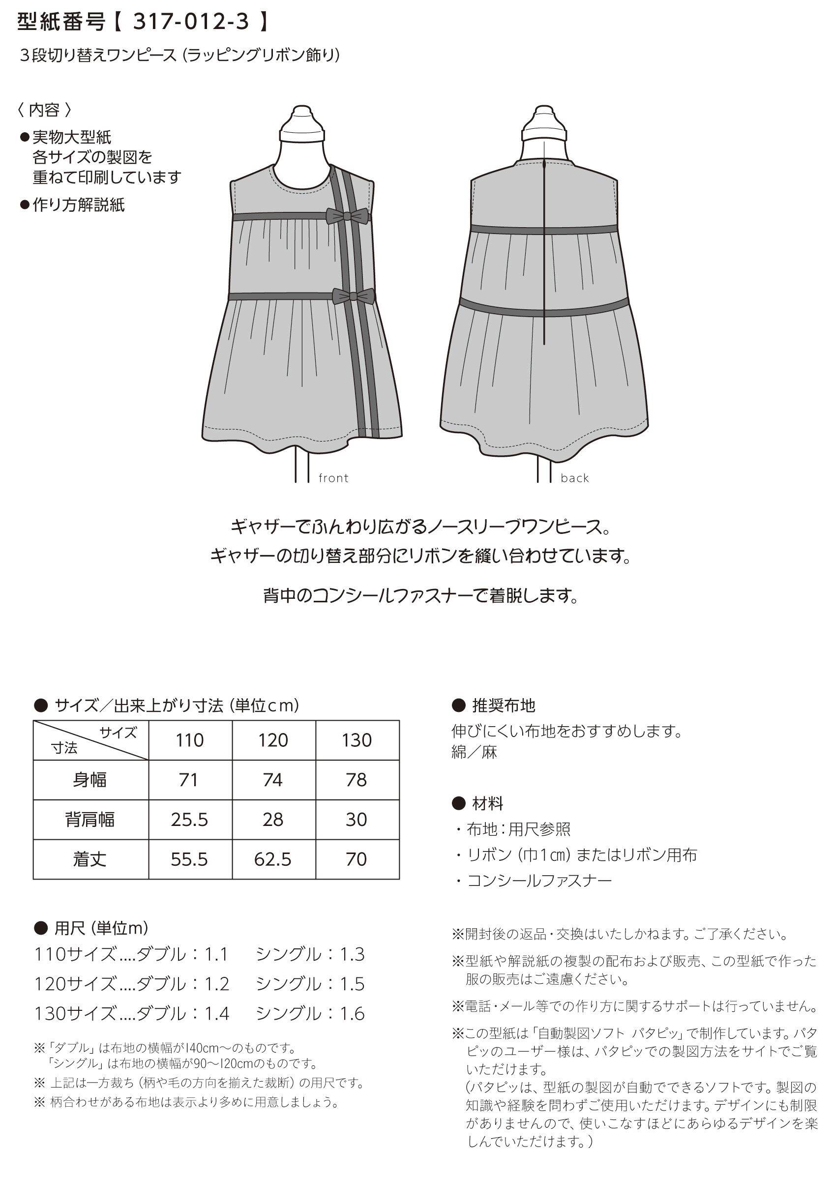 80~100サイズも販売中【型紙番号 317-012-2】。
