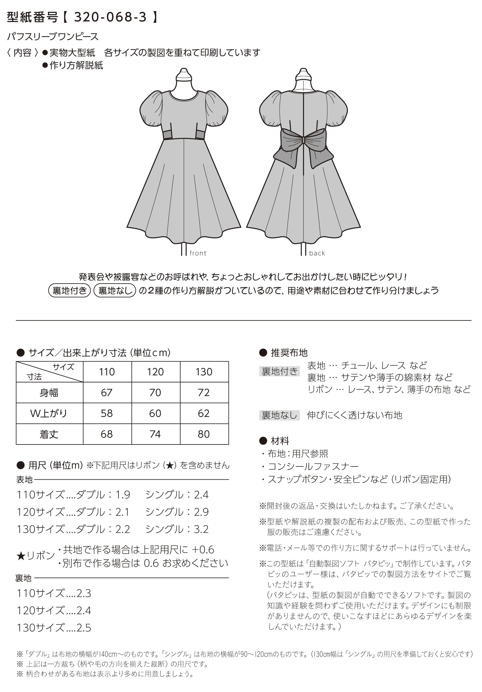 写真は見本です。推奨生地や用尺は画像を参照ください。