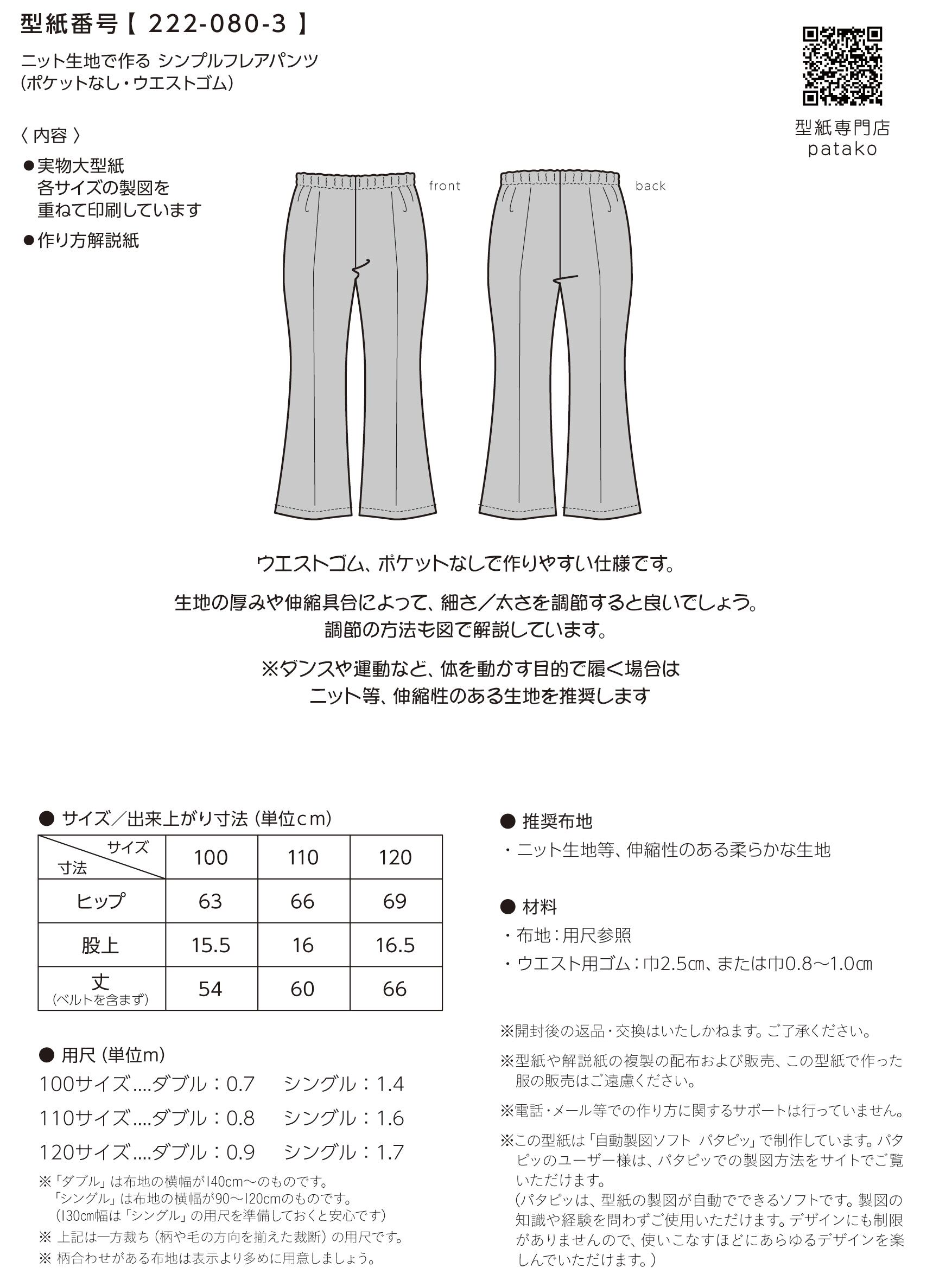 ニット生地でつくるシンプルフレアパンツ 100-120(222-080-3)